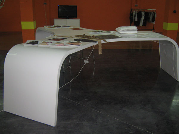 Una mesa de trabajo, de reuniones, que permite integrar soportes para reproducir material audiovisual, se incorpora como un elemento más dentro del entorno en el que transcurre la sesión de trabajo.